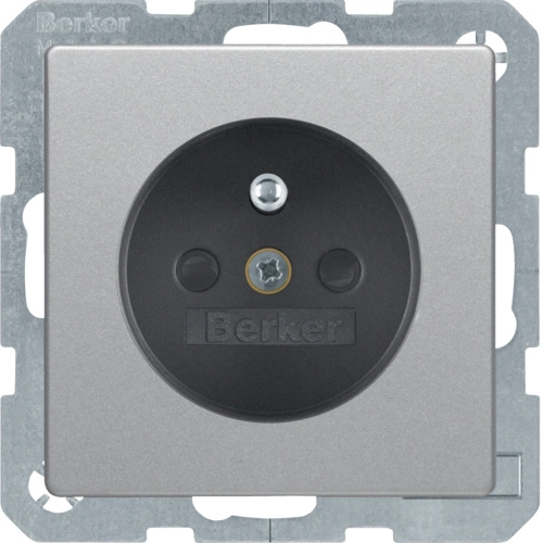 Hager Berker stopcontact met penaarde (België) en verhoogde aanraakbeveiliging, Q1/Q3/Q7, aluminium mat. Met klauwbevestiging/spreidklemmen. Excl. afdekraam.