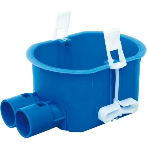 ABB Haf type HW150-F ovale hollewand-inbouwdoos, 50 mm diep, geschikt voor 'vlakke' dubbele wandcontactdozen met randaarde. Met dubbele buisinvoer (16/19/20 mm).