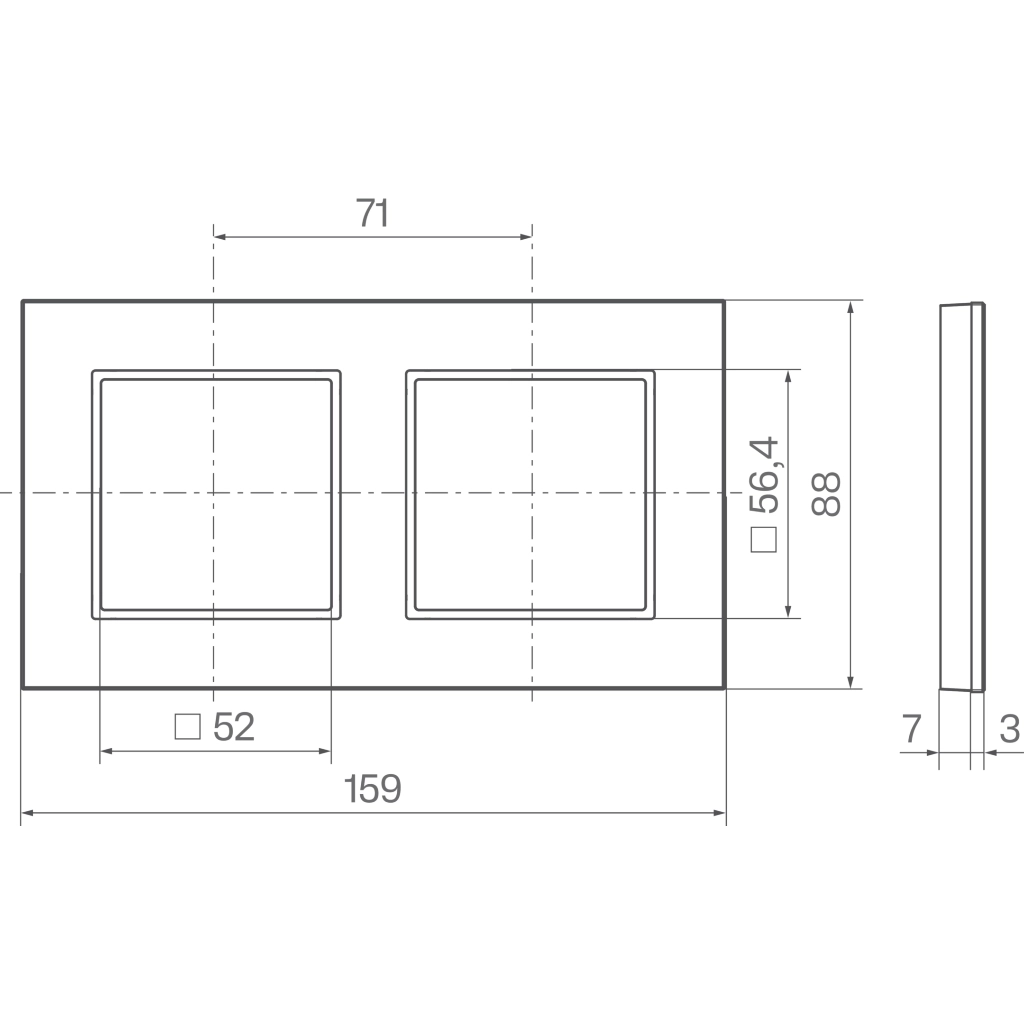 Hager Berker 2-voudig afdekraam, voor horizontale montage, A.8, RVS (geborsteld). Afm.: 88x159x10mm.