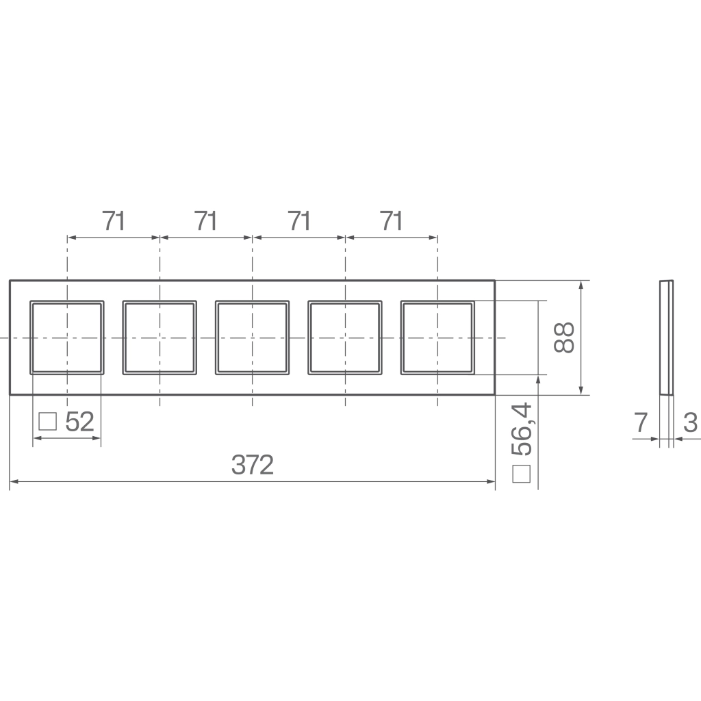 Hager Berker 5-voudig afdekraam, voor horizontale montage, A.8, aluminium (geanodiseerd, geborsteld). Afm.: 88x372x10mm.