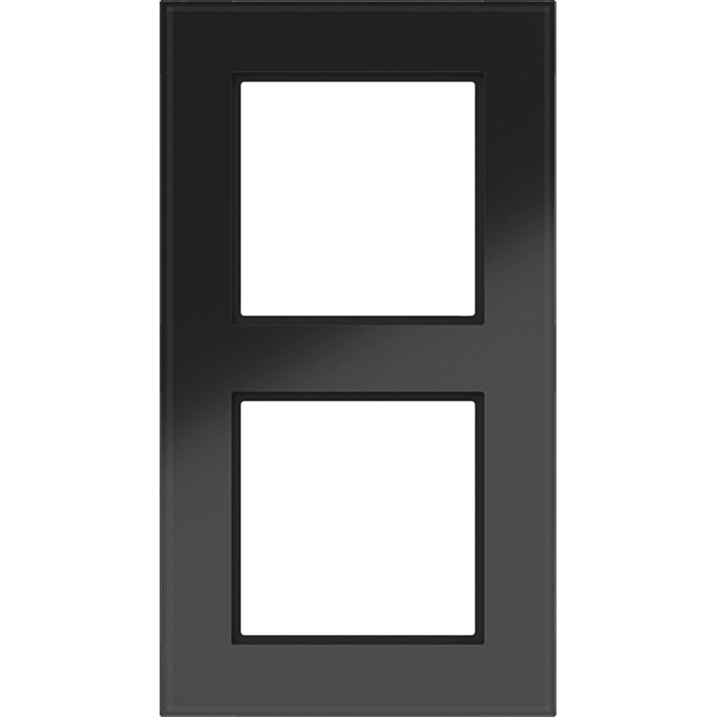 Hager Berker 2-voudig afdekraam, voor horizontale en verticale montage, A.8, glas zwart (glanzend). Afm.: 88x159x10mm.