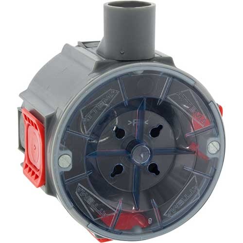 Aan de achterzijde voorzien van breekpoort voor buis 16 mm.