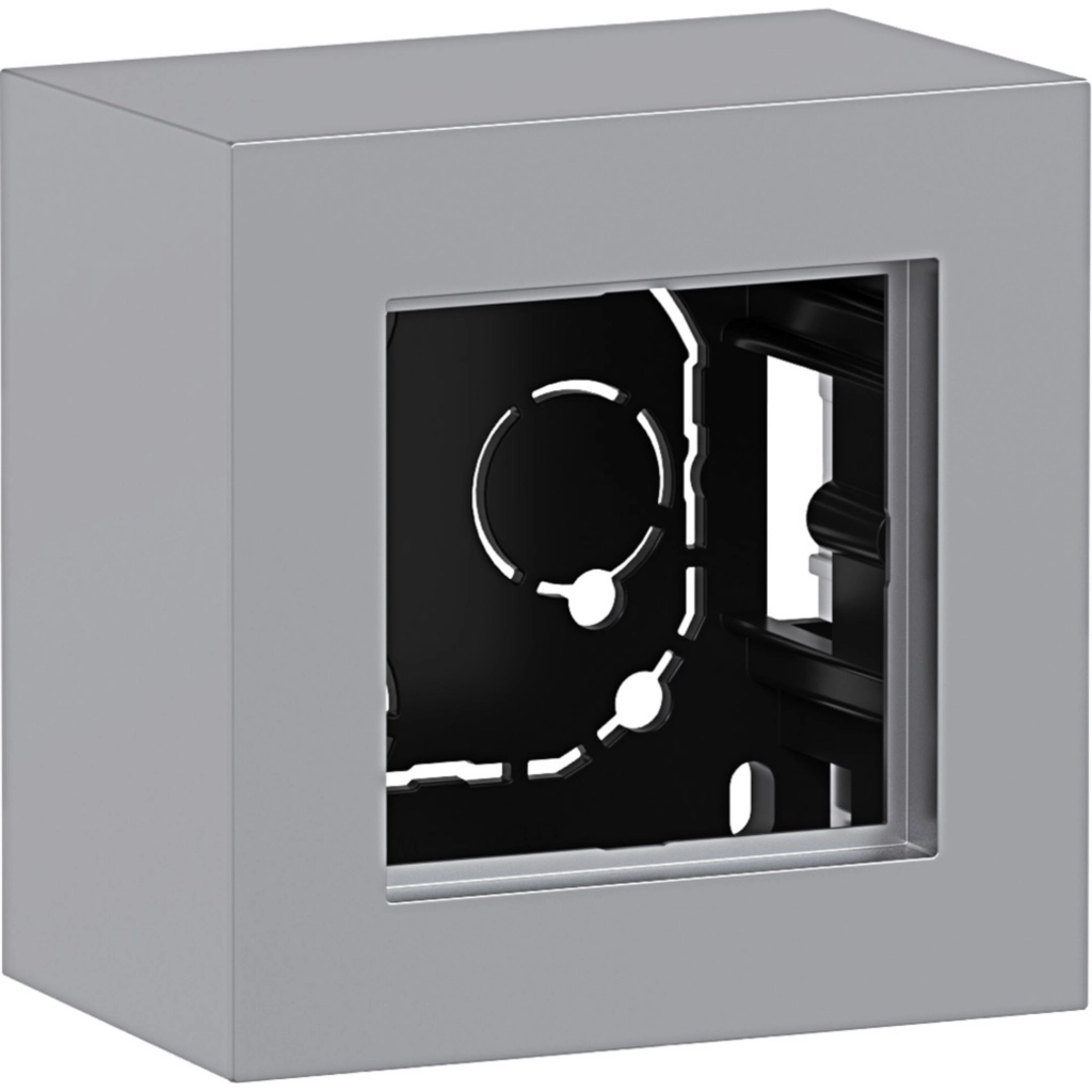 Hager Berker 1-voudige opbouwbak, voor horizontale en verticale montage, A.8, titaan mat. Afm.: 88x88x54mm. Thermoplast (mat gelakt).