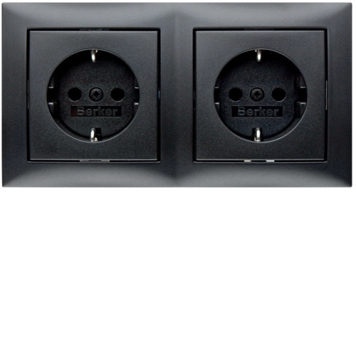 Berker voorbedraad dubbel stopcontact met randaarde en afdekraam, serie S1 in antraciet mat. Alleen geschikt voor duo-inbouwdoos, niet voor twee losse inbouwdozen. Bij afzonderlijke montage losse wcd’s en dubbel afdekraam nodig.