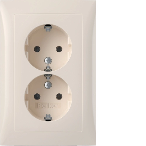 Berker stopcontact 2-voudig met randaarde en (geïntegreerd) afdekraam, S1, crème glans. Alleen geschikt voor een 1,5-voudige (ovale) inbouwdoos.