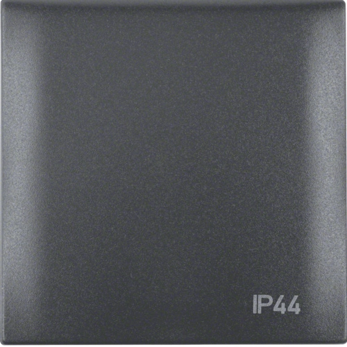 Hager Berker afdekraam 1-voudig met klapdeksel, 59,5 × 59,5 × 17,9 mm, met opdruk IP44. Serie Integro Flow in mat antraciet. Ideaal voor o.a. (bad)meubels, caravans en boten. Niet geschikt voor standaard muurmontage.