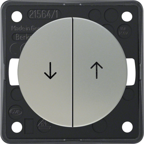 Hager Berker impulsdrukker voor jaloeziebediening met pijlsymbolen en beveiliging tegen gelijktijdige bediening van beide kanten. Serie Integro Flow in mat chroom. Voor o.a. (bad)meubels, caravans en boten. Niet voor standaard muurmontage. Meer informatie »