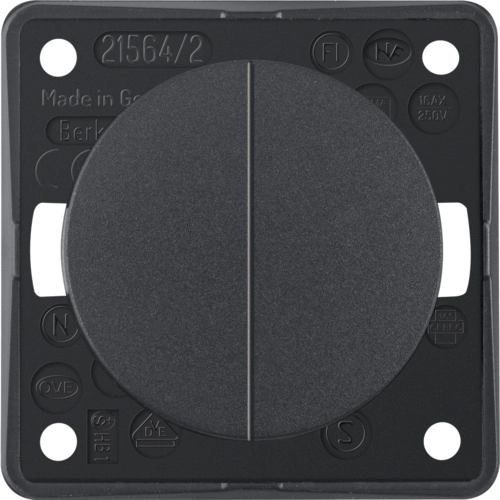 Hager Berker serieschakelaar 10 AX, voor het schakelen van twee lichtpunten vanaf één plek. Niet geschikt voor wisselschakelingen. Serie Integro Flow, mat antraciet. Voor o.a. (bad)meubels, caravans en boten. Niet geschikt voor standaard muurmontage.