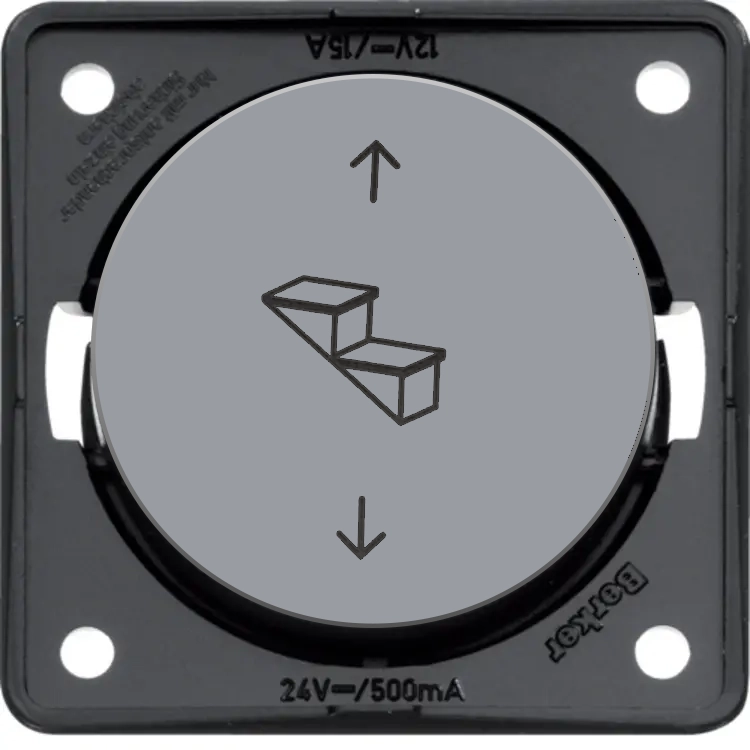 Hager Berker impulsdrukker met traptrede- en pijlsymbool voor elektrische opstap in campers. Serie Integro Flow in glanzend grijs. Meer informatie »