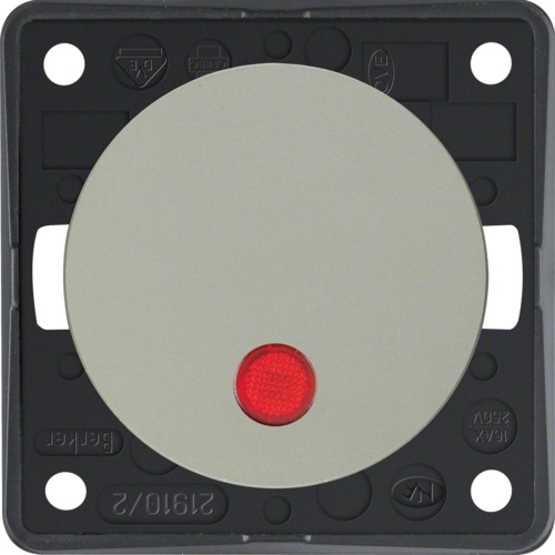 Hager Berker uitschakelaar, 2-polig met controleverlichting, 10 AX. Serie Integro Flow in edelstaal (mat gelakt thermoplast). Ideaal voor o.a. (bad)meubels, caravans en boten. Niet geschikt voor standaard muurmontage.