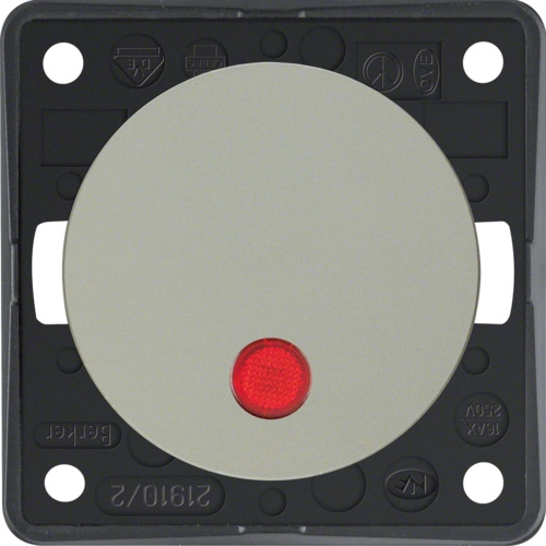 Hager Berker uitschakelaar, 2-polig met controleverlichting, 10 AX. Serie Integro Flow in mat chroom (gelakt thermoplast). Ideaal voor o.a. (bad)meubels, caravans en boten. Niet geschikt voor standaard muurmontage.