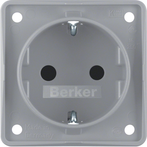Hager Berker stopcontact met randaarde en verhoogde aanraakbeveiliging (kindveilig). Bedrading aansluiten met steekklemmen. Serie Integro Flow in mat grijs. Ideaal voor o.a. (bad)meubels, caravans en boten. Niet geschikt voor standaard muurmontage.