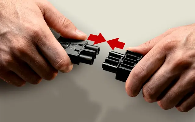 Stekkerbare bekabeling draait dat om. Je werkt met kant-en-klare kabelsets die aan beide kanten een connector hebben. Die connectoren klik je in elkaar, net zoals je een stekker in een stopcontact steekt of de laadkabel in je mobiel. Het resultaat is hetzelfde (stroom gaat van A naar B), maar de manier waarop je dat voor elkaar krijgt, is een stuk eenvoudiger en veiliger.