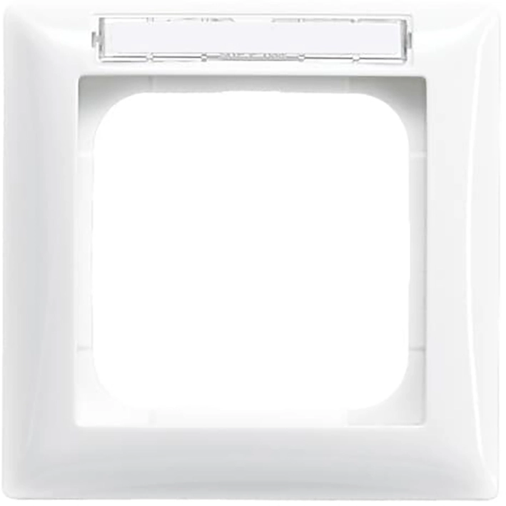 Busch-Jaeger 1-voudig afdekraam met tekstvenster, Balance SI, wit glans. Afm.: 81 x 81 x 11 mm.
