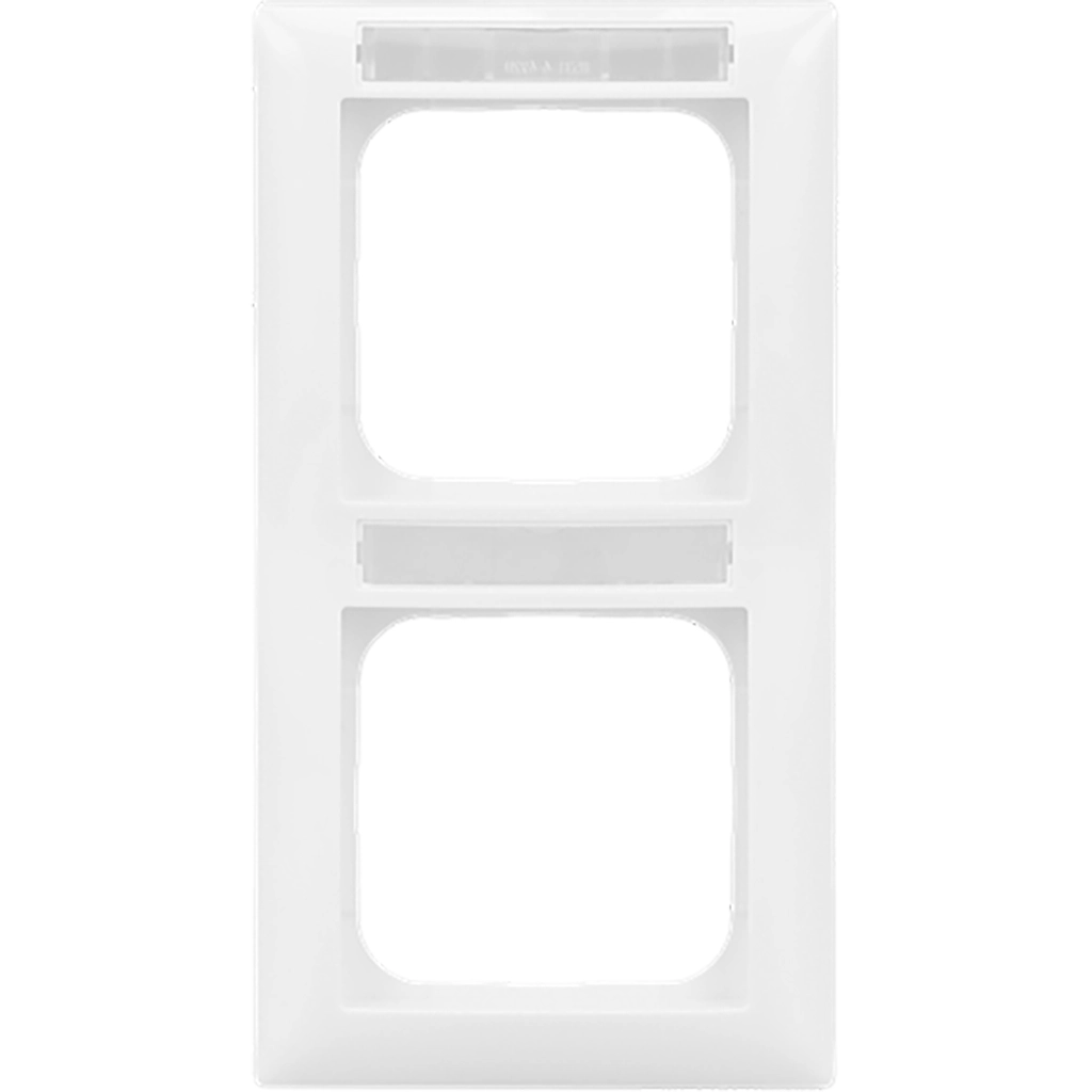 Busch-Jaeger 2-voudig afdekraam (verticaal) met tekstveld, Balance SI, wit glans. Afm.: 81 x 152 x 11 mm. Tekstveld: 46,9 x 6 mm. Let op: alleen verticaal te gebruiken.