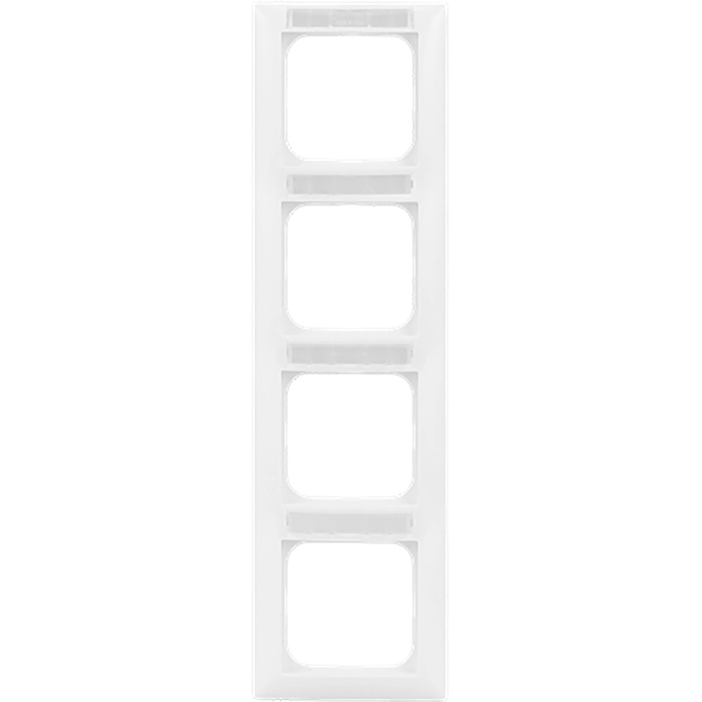 Busch-Jaeger 4-voudig afdekraam (verticaal) met tekstveld, Balance SI, wit glans. Afm.: 81 x 294 x 11 mm. Tekstveld: 46,9 x 6 mm. Let op: alleen verticaal te gebruiken.