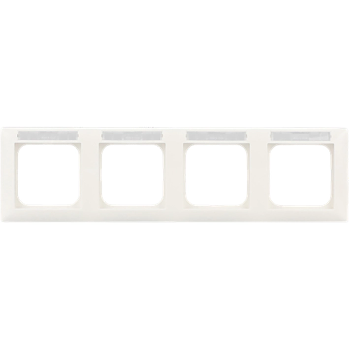 Busch-Jaeger 4-voudig afdekraam (horizontaal) met tekstveld, Balance SI, wit glans. Afm.: 294 x 81 x 11 mm. Tekstveld: 46,9 x 6 mm. Let op: alleen horizontaal te gebruiken.