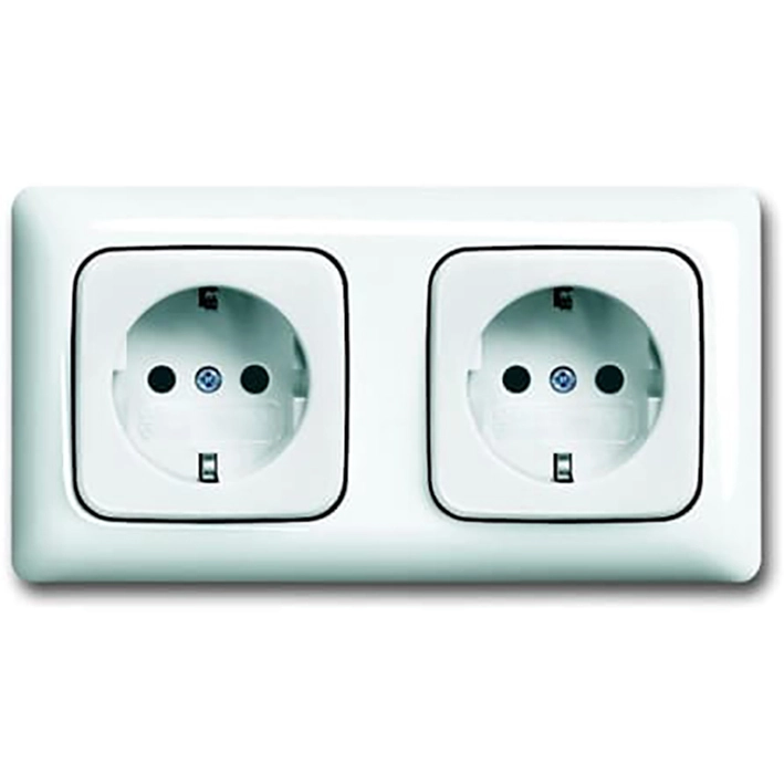 Busch-Jaeger Reflex SI Linear randaarde stopcontact, met 2 eenheden, voorbedraad, incl. afdekraam. Alleen geschikt voor speciale (hollewand-)inbouwdozen (DUO-doos). Bijvoorbeeld van het merk ABB Haf de types H251 of HW252-F of van het merk Attema de types 1144 of AT1066.