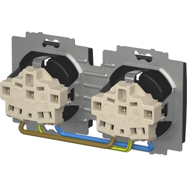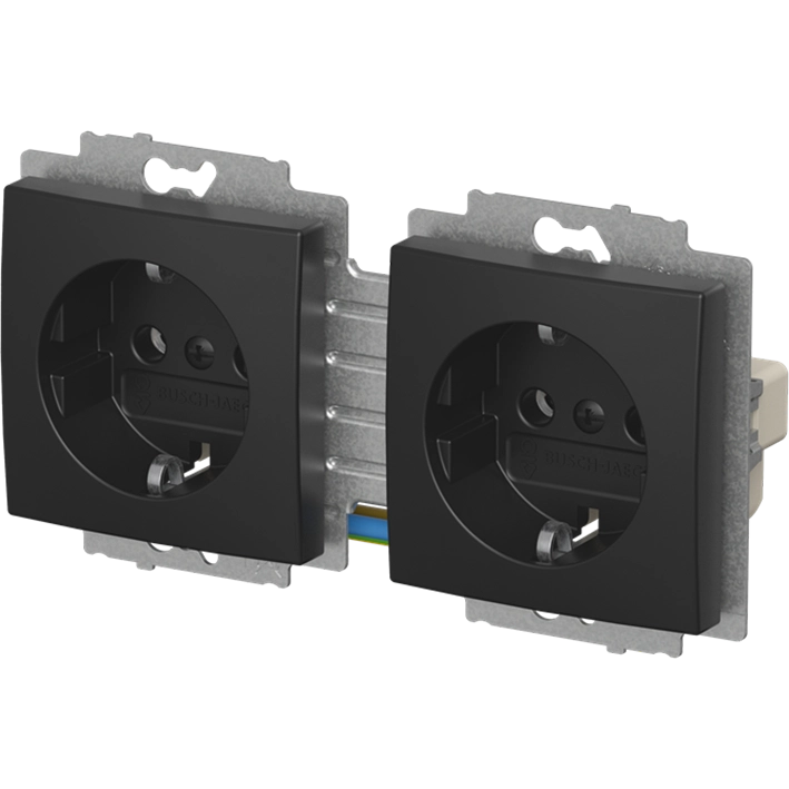 Busch-Jaeger stopcontact 2-voudig met randaarde, voorbedraad en incl. afdekraam, Balance SI, zwart mat. Alleen geschikt voor speciale dubbele inbouwdozen (DUO-doos), niet geschikt voor 2 enkele inbouwdozen naast elkaar.