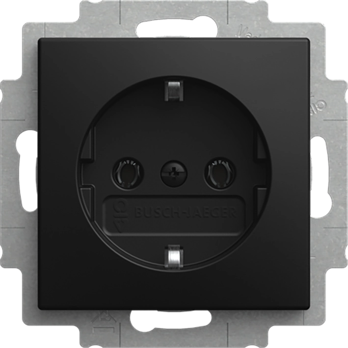 Busch-Jaeger stopcontact randaarde zonder spreidklemmen, Balance SI, zwart mat. Excl. afdekraam.