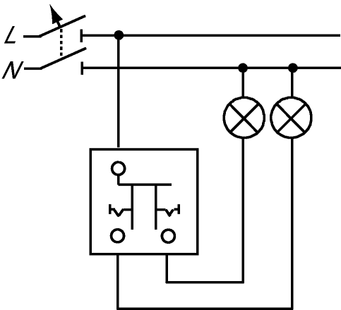 Aansluitingen, 1 x fase/bruin, 2 x schakeldraad/zwart.