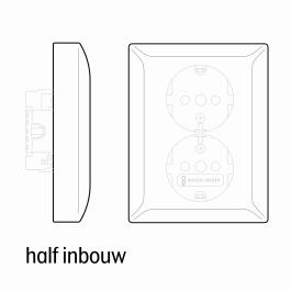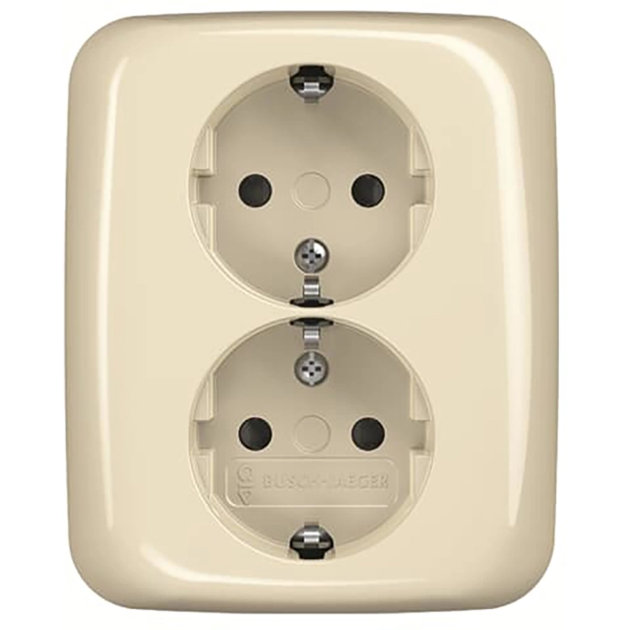 Busch-Jaeger dubbel stopcontact met randaarde en verhoogde aanraakbeveiliging, Standaard SI. Geschikt voor enkele inbouwdoos.