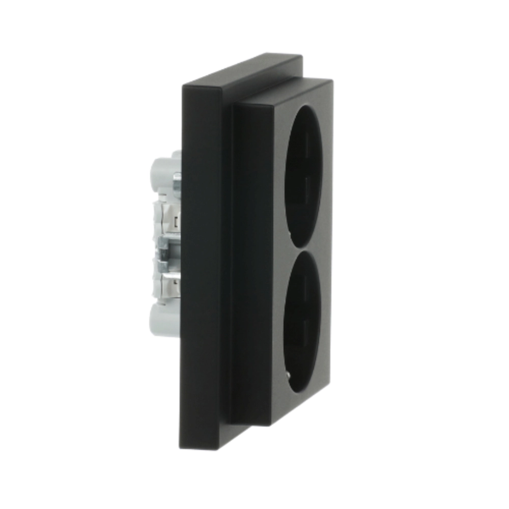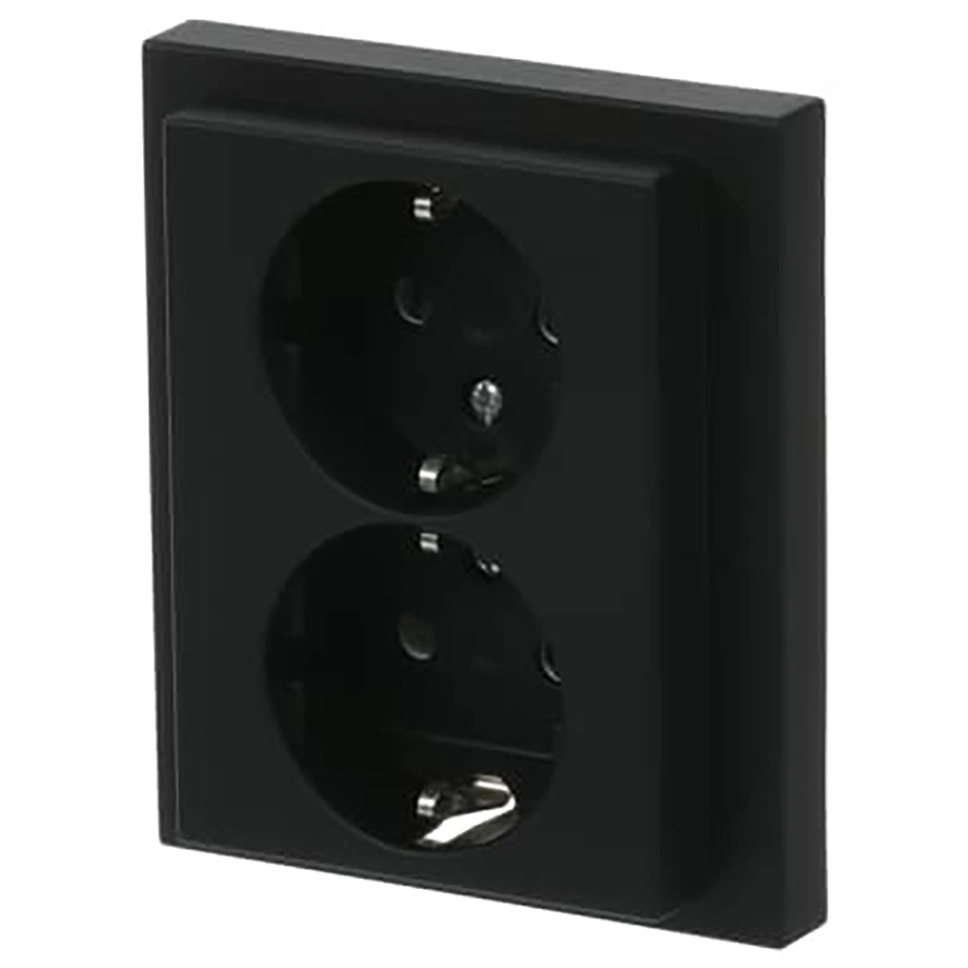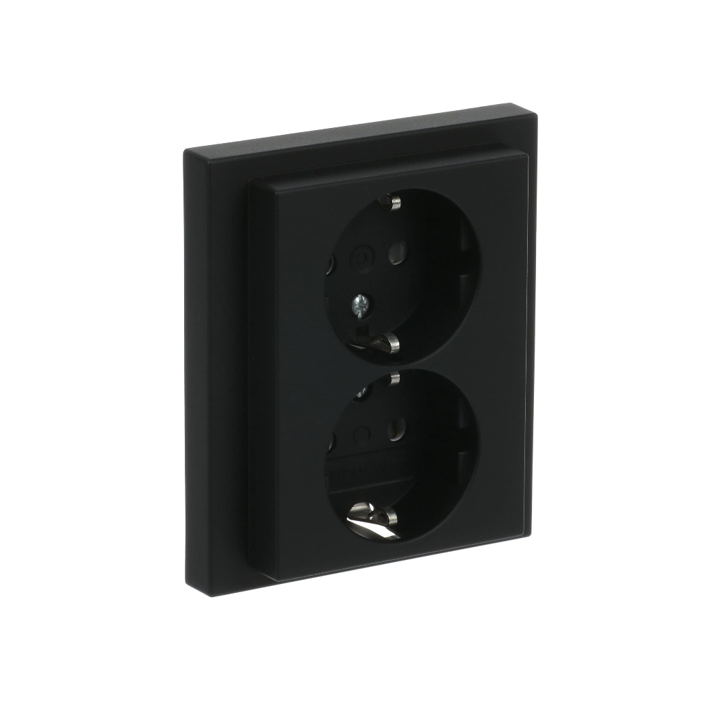 Busch-Jaeger dubbel stopcontact met randaarde en verhoogde aanraakbeveiliging, Future Linear, zwart mat. Geschikt voor enkele inbouwdoos.