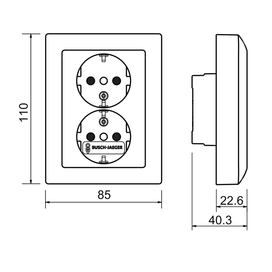 Busch-Jaeger dubbel stopcontact met randaarde en verhoogde aanraakbeveiliging, Balance SI, wit glans. Geschikt voor enkele inbouwdoos. Zonder klauwbevestiging/spreidklemmen.