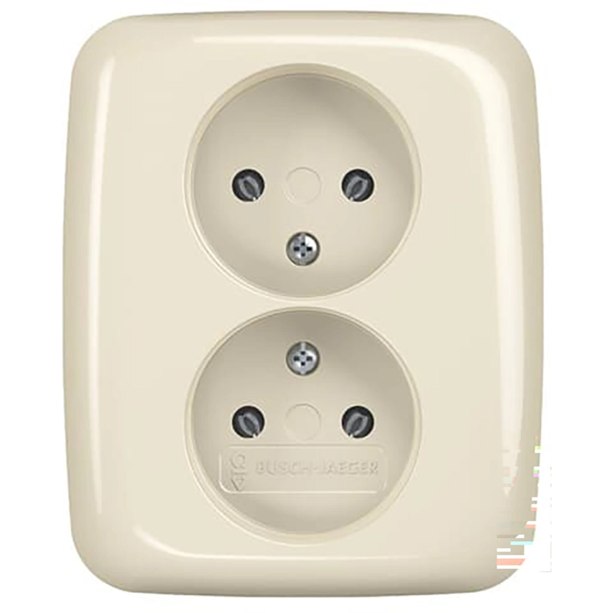Busch-Jaeger dubbel stopcontact zonder randaarde, Standaard SI. Geschikt voor enkele inbouwdoos.