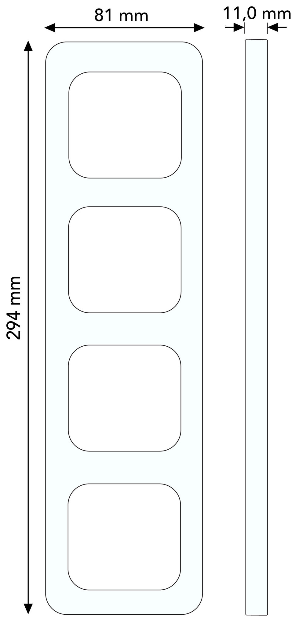 Afdekraam Standaard, met afgeronde hoeken. Materiaal Duroplast 4-voudig, afmeting 81 x 296 mm Kleur: Wit Breedte: 81 Millimeter (mm) Halogeenvrij: Ja Hoogte: 81 Millimeter (mm) Diepte: 11 Millimeter (mm) Aantal eenheden: 4 Met kla... Meer informatie »