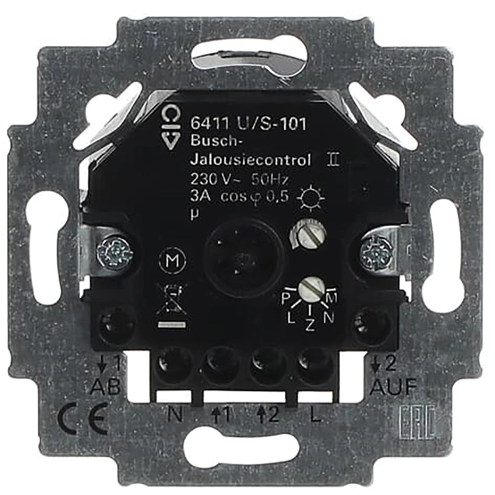 Busch-Jaeger 6411 U/S-101 jaloezie control II-sokkel. Geschikt voor jaloezie-, rolluik- en zonweringaandrijvingen met elektronische of mechanische eindschakelaar. Twee 230 V nevenpostingangen. Voor bedieningselementen 6430-x, 6066-x, 6455-101. Meer informatie »