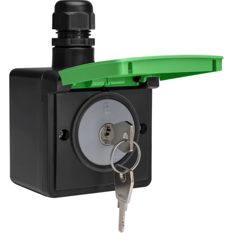 Niko 761-37871 Hydro wandcontactdoos fiets oplaadpunt met opbouwbak en slot zwart/groen