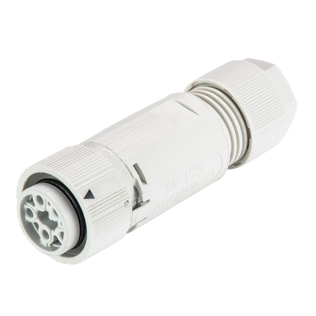 Connector voor RST16i5-installaties met 5 polen, 400 V en 16 A, beschermingsgraad IP66. Kleurcodering grijs. Halogeenvrij. Meer informatie »