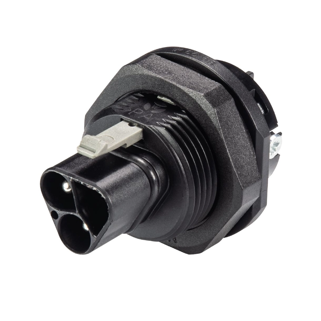 Connector voor RST20i3-installaties met 3 polen, 250 V en 20 A, beschermingsgraad IP66/IP68/IP69. Kleurcodering grijs. Halogeenvrij. Meer informatie »