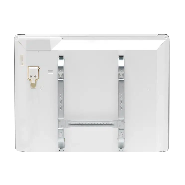 Dimplex elektrische wandconvector, 500 W, 40 cm hoog. Luchtuitblaas boven, aan/uit-schakelaar, vorstbeveiliging, elektronische thermostaat met tijdschakelklok. Geschikt voor app-bediening dankzij ingebouwde Wi-Fi. Afmetingen (h × b × d): 400 x 525 x 90 mm (100 mm inclusief muurafstand). Kleur: wit. IP24. Los verkrijgbare voetjes maken de convector mobiel inzetbaar.
