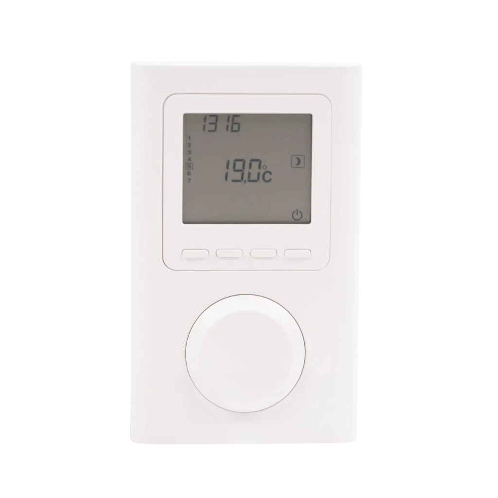 De draadloze thermostaat van Dimplex maakt nauwkeurige meting van de kamertemperatuur mogelijk, omdat de sensor op verschillende punten kan worden geplaatst. Hij is geschikt voor elektrische vloermatten en voor infraroodpanelen. De werkelijke waarde wordt via de RF naar de opbouwontvanger gestuurd, die op zijn beurt de taak van de temperatuurregelaar overneemt. Deze vergelijkt de werkelijke temperatuur met de gewenste temperatuur en schakelt het paneel of de vloerverwarming aan of uit via de schakeluitgang.