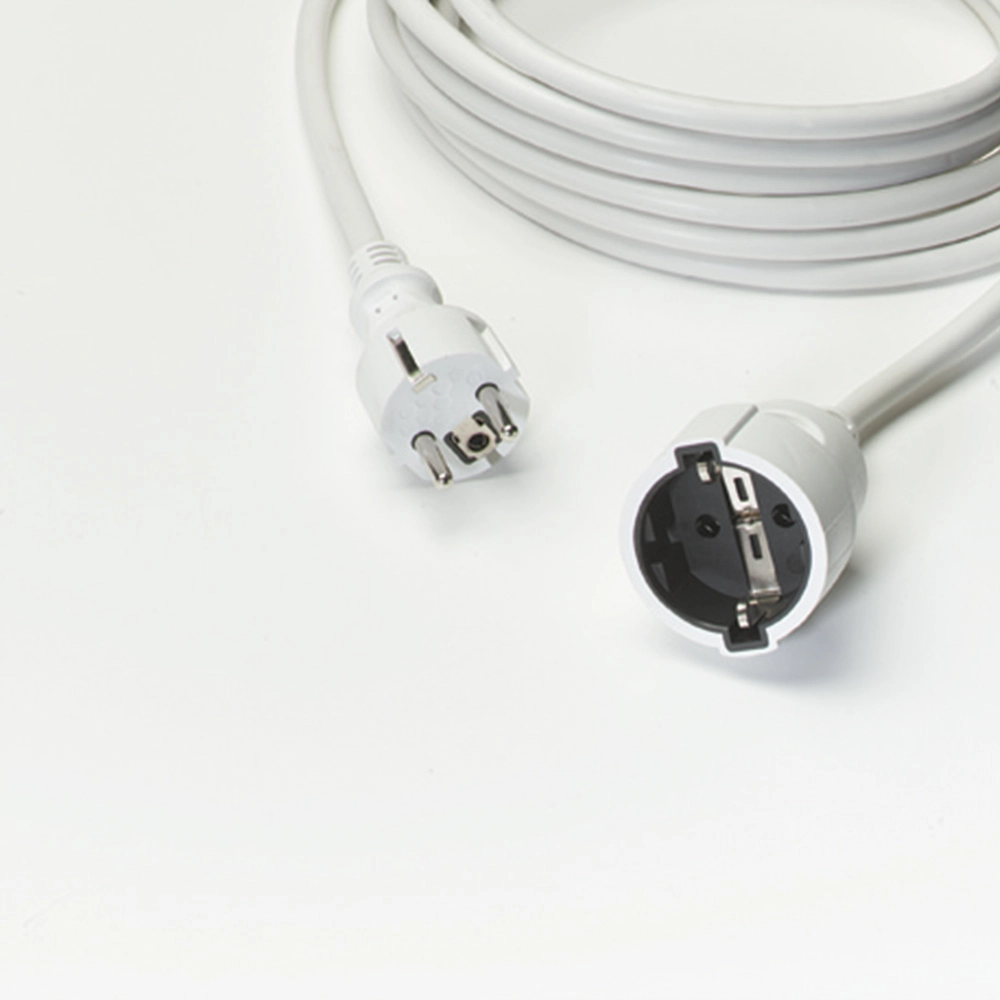 Koppelsnoer 3 x 1,5 mm², lengte 3 meter. Aansluiting 1: veiligheidsstekker CEE 7/4 (type F), aansluiting 2: randaardecontrastekker CEE 7/3 (type F). Buitenmantel: PVC, wit, diameter: 7,9 mm.Meer informatie »