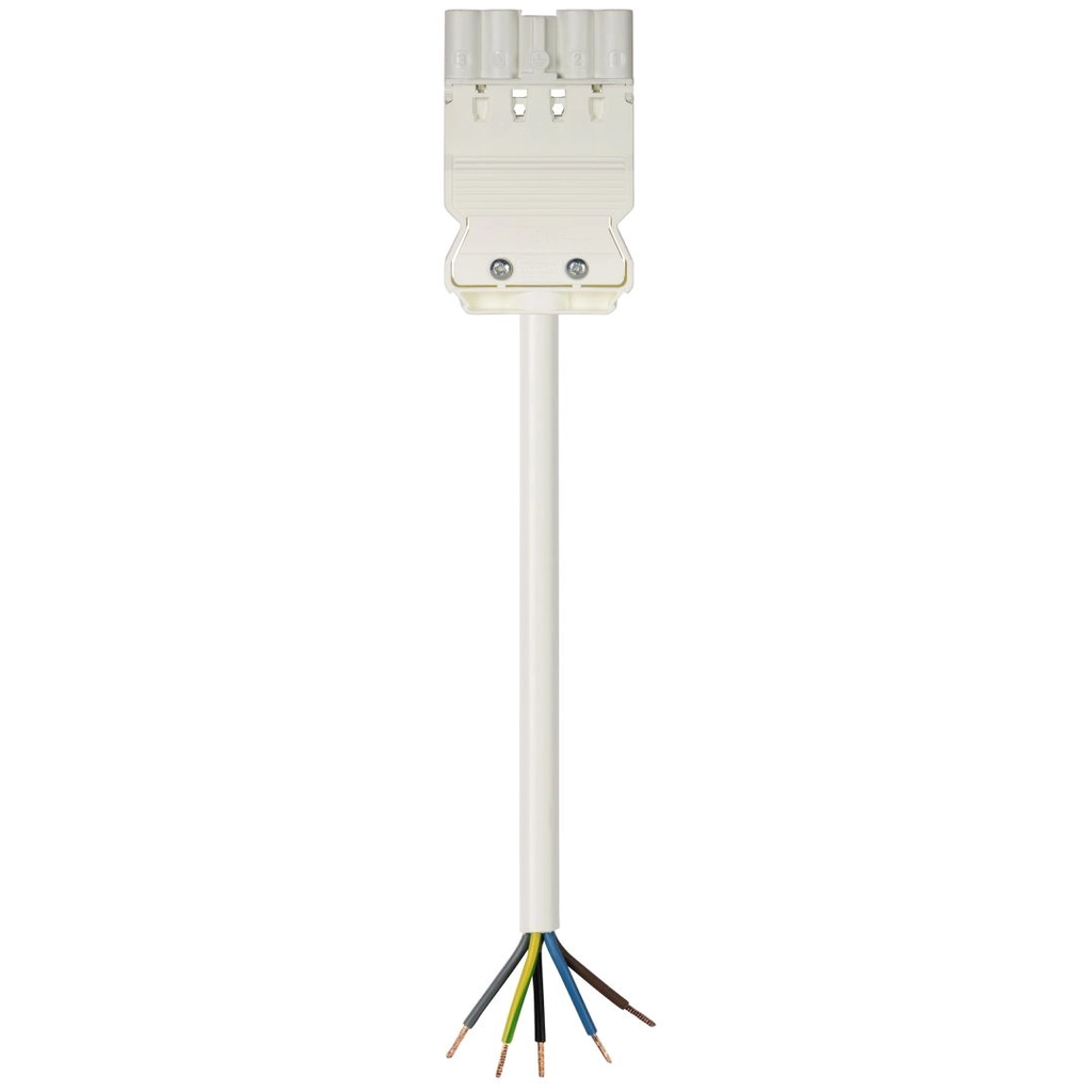 Wieland GST18i5 aansluitkabel (H05VV-F), met contrastekker (female) en vrij kabeluiteinde. 5-polig, 1.5 mm², 250 V/16 A. Codering: wit, mantel: wit. Met vergrendeling in connector. Markering: 3, N, PE, 2, 1. Lengte: 2 meter. Meer informatie »