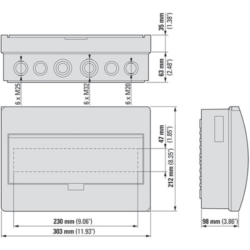 Eaton 280347 BC-O-1/12-ECO installatiekast opbouw IP40, 1x 12TE. Transparante deur. Mogelijkheid kabelinvoer: Metrische kabelwartels boven/onder. Kunststof ABS behuizing wit (RAL 9003). PE- en N-klemmen, PE: 12x , N: 12x (10 mm2 schroef). IK05 stootvast. Meer informatie »