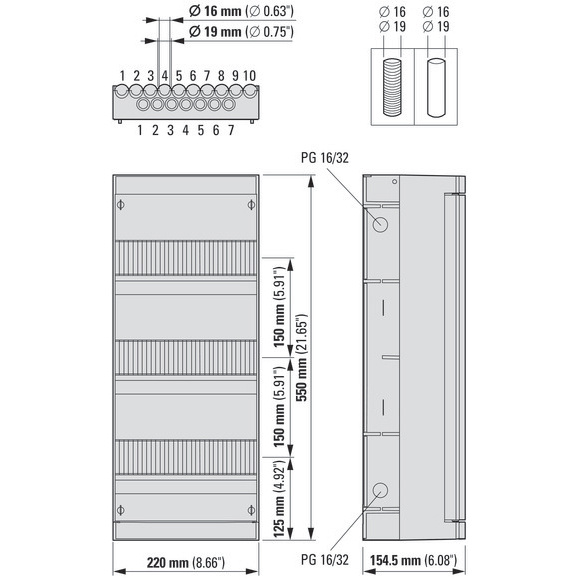 Eaton 2066031 I-93G34K0-HM104, 3-fase groepenkast. 9 x installatieautomaat 16A, karakteristiek B, 1x installatieautomaat 4-polig, 3x aardlekschakelaar (4p) 30mA. 1x hoofdschakelaar 4P. Afmetingen hxb: 550x220 mm. Kleur kast: zwart, RAL9005. Meer informatie »