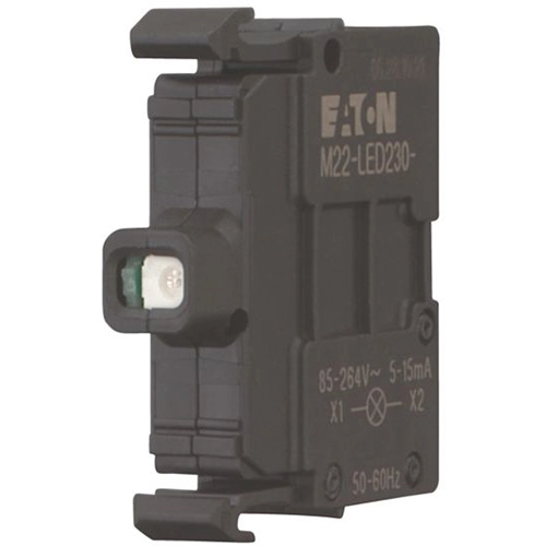 Eaton M22-LED230-B 218059 LED element blauw, frontbevestiging, 85 - 264 V AC, 50-60 Hz. Nom. bedrijfsstroom Ie: 5 - 15 mA. Beschermingsgraad: IP20. Aansluittechniek: schroefklemmen. Levensduur EN 60064 bij ta = +25 °C tgem (AC): 100000 h. Meer informatie »