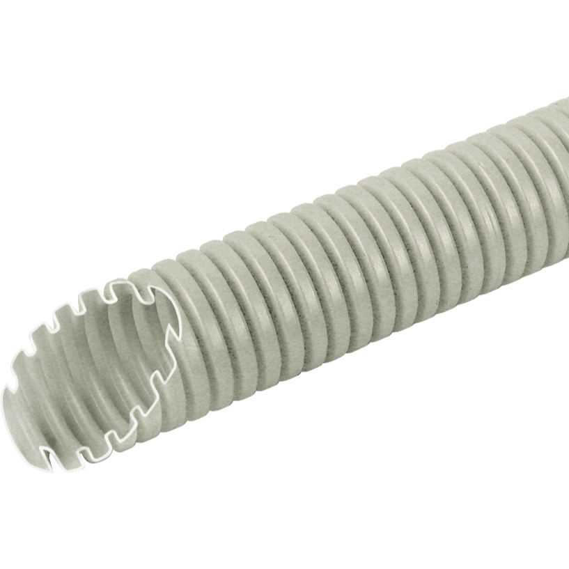 Frankische FFKu-EL-F 16 is een buigzame lichte buis voor holle wand in lichtgrijs, uitgevoerd in PVC en bedoeld voor eenvoudige inbouwinstallaties. Met een buitendiameter van 16mm (5/8), een binnendiameter van 11mm en een lengte van 50 meter sluit deze installatiebuis goed aan op compacte leidingtrajecten waar een soepele verwerking gewenst is.
