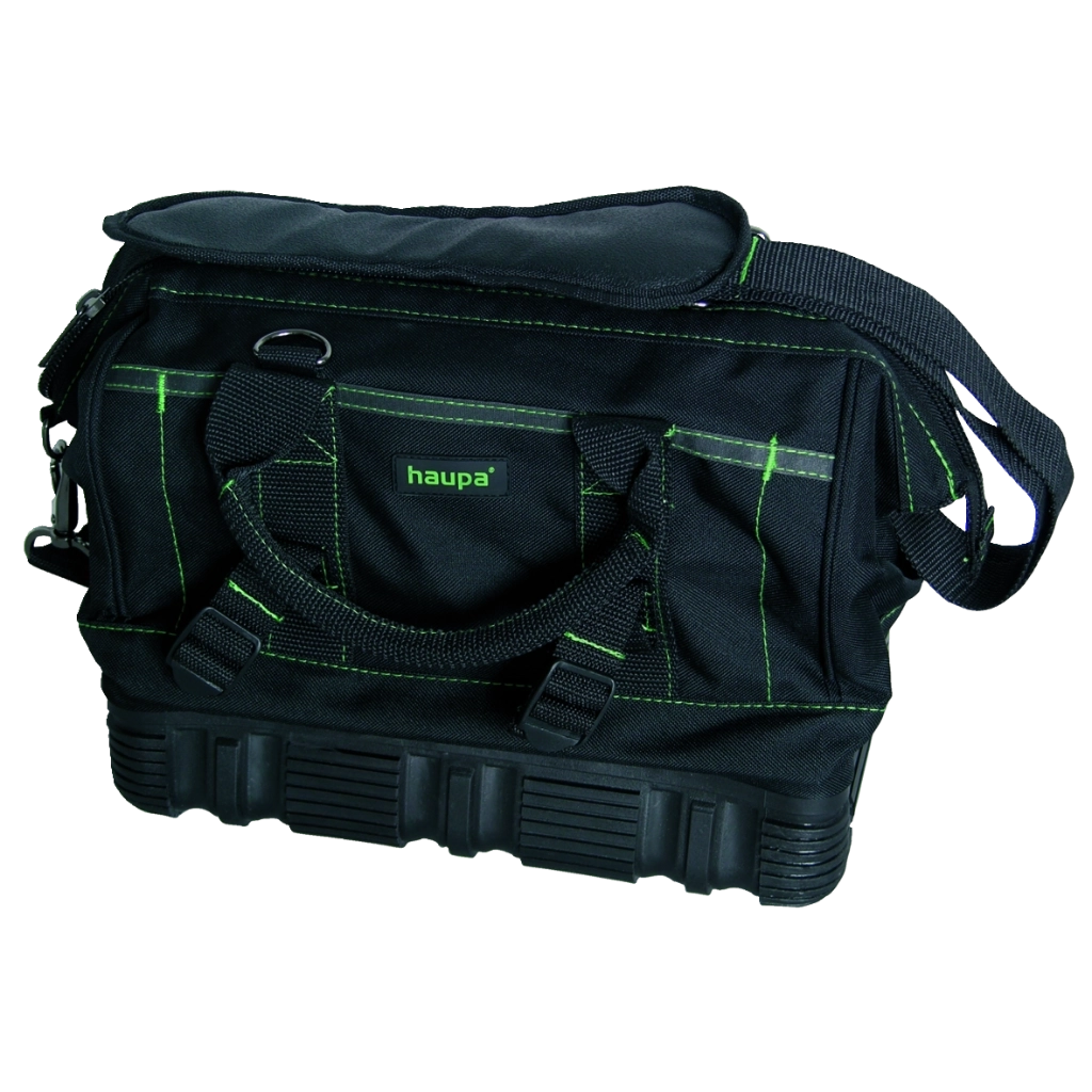 Haupa gereedschapstas XL van sterk 600D polyester, met 10 vakken (binnen/buiten), waterpasriem, rubberen verstevigde bodem, waterdicht, vuilafstotend. Inclusief verstelbare schouderriem. Kleur: zwart/groen.Meer informatie »
