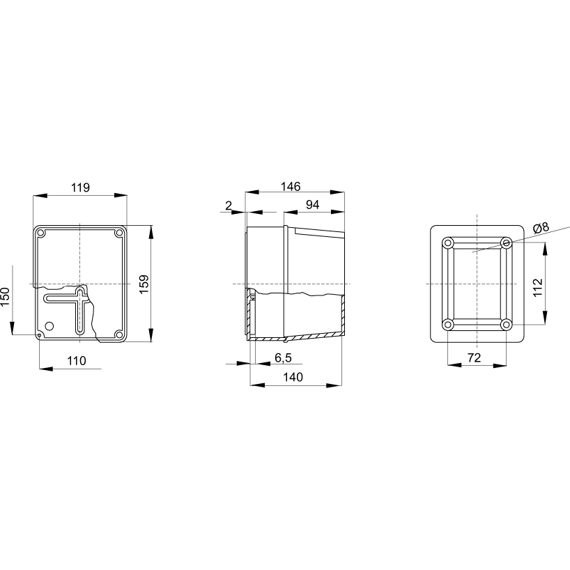 Isolatieklasse II (volgens IEC 61140). Grijs RAL 7035, IP56, Technopolymeer GWPLAST 75, IK08 mechanische weerstand, interne afmeting 150x110x140mm (LxHxD, gaten max Ø 37mm, 4 dekselschroeven, verzegelbaar gescharnierd. bedrijfstemperatuur -25 tot +60 °C. Meer informatie »