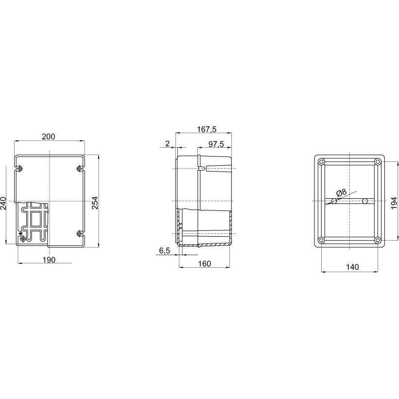 Isolatieklasse II (volgens IEC 61140). Grijs RAL 7035, IP56, Technopolymeer GWPLAST 75, IK08 mechanische weerstand, interne afmeting 240x190x160mm (LxHxD, gaten max Ø 37mm, 4 dekselschroeven, verzegelbaar gescharnierd. bedrijfstemperatuur -25 tot +60 °C. Meer informatie »