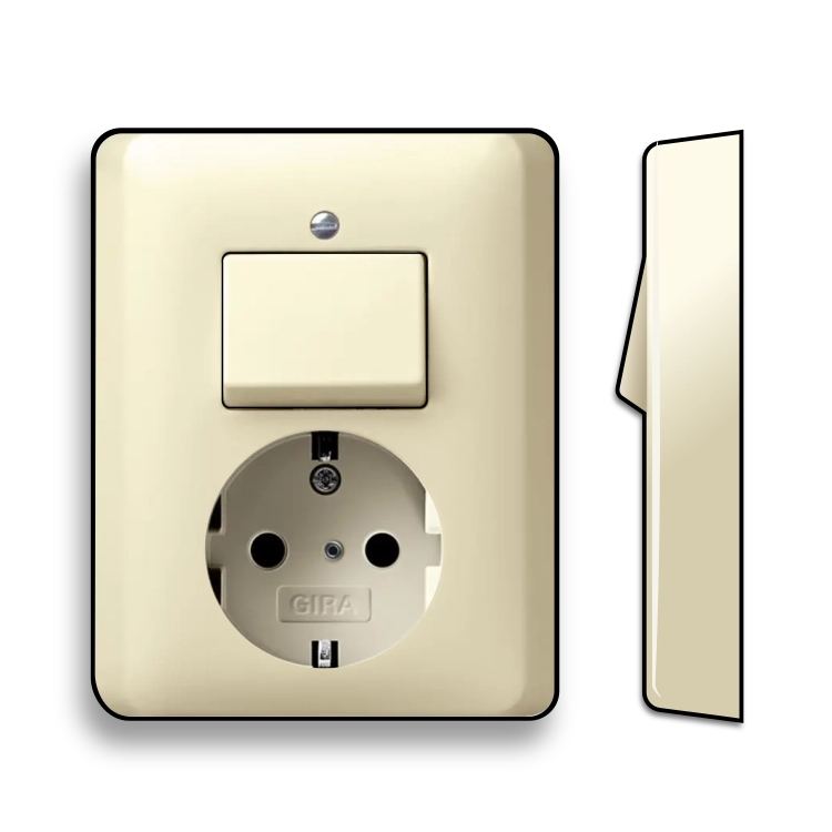 Gira combinatie wisselschakelaar en stopcontact met randaarde (half opbouw). Standaard 55, crème glans. Meer informatie »