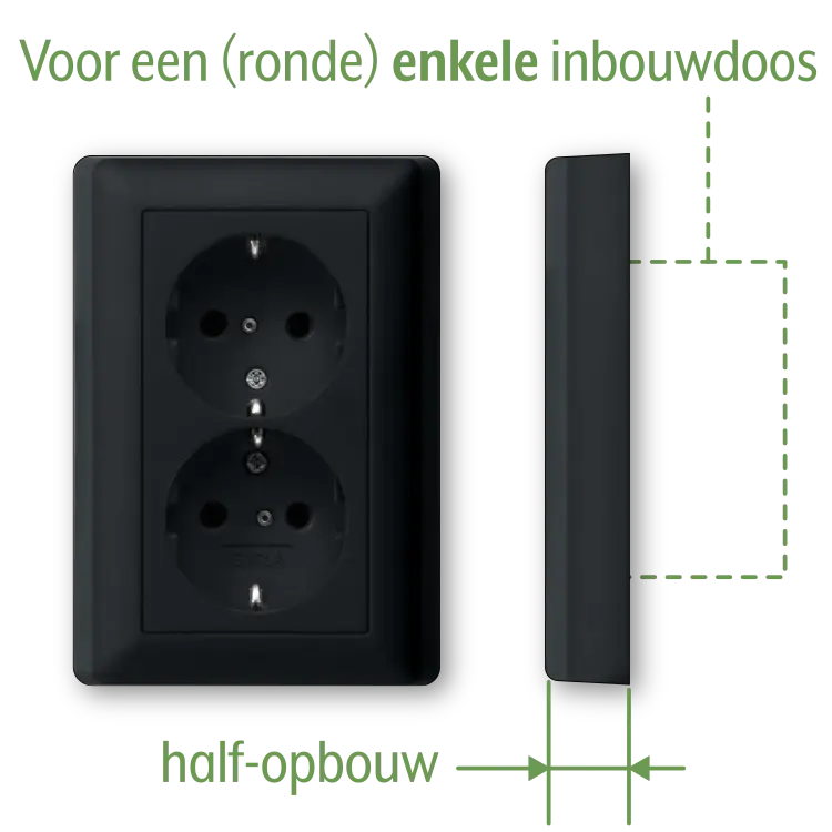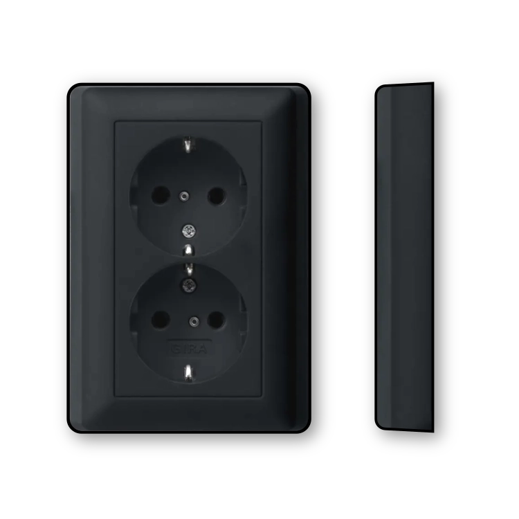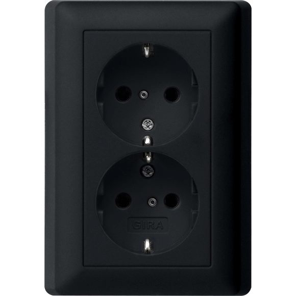 Gira stopcontact randaarde en verhoogde aanraakbeveiliging, 2-voudig voor enkele inbouwdoos, zwart mat. Ligt wat dikker op de muur (half opbouw). Meer informatie »