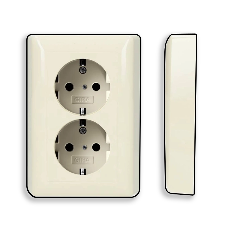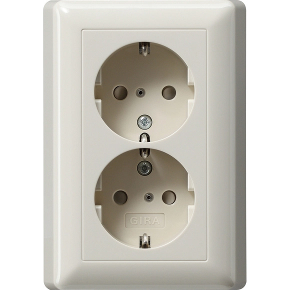 Gira stopcontact randaarde en verhoogde aanraakbeveiliging, 2-voudig voor enkele inbouwdoos, crème glans. Ligt wat dikker op de muur (half opbouw). Meer informatie »