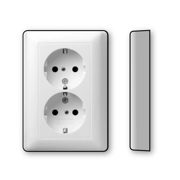 Gira stopcontact randaarde en verhoogde aanraakbeveiliging, 2-voudig voor enkele inbouwdoos, wit glans. Ligt wat dikker op de muur (half opbouw). Meer informatie »