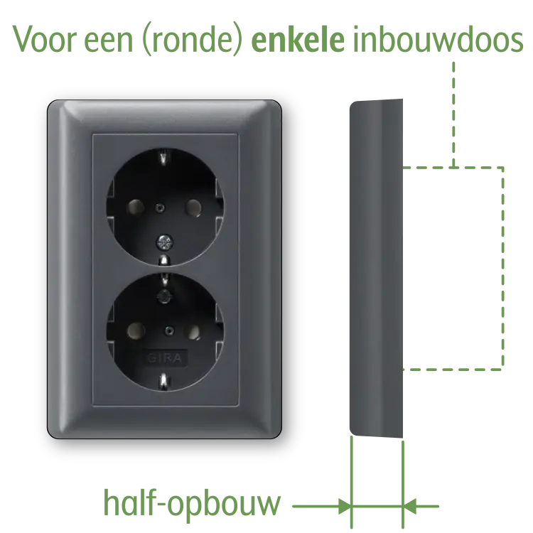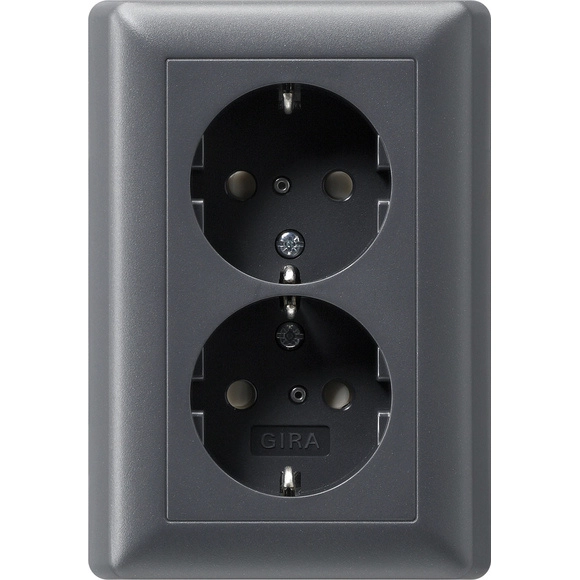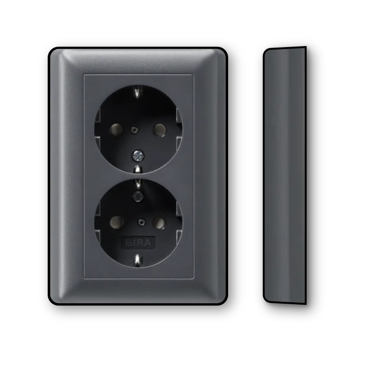 Gira stopcontact randaarde en verhoogde aanraakbeveiliging, 2-voudig voor enkele inbouwdoos, antraciet mat. Ligt wat dikker op de muur (half opbouw). Meer informatie »